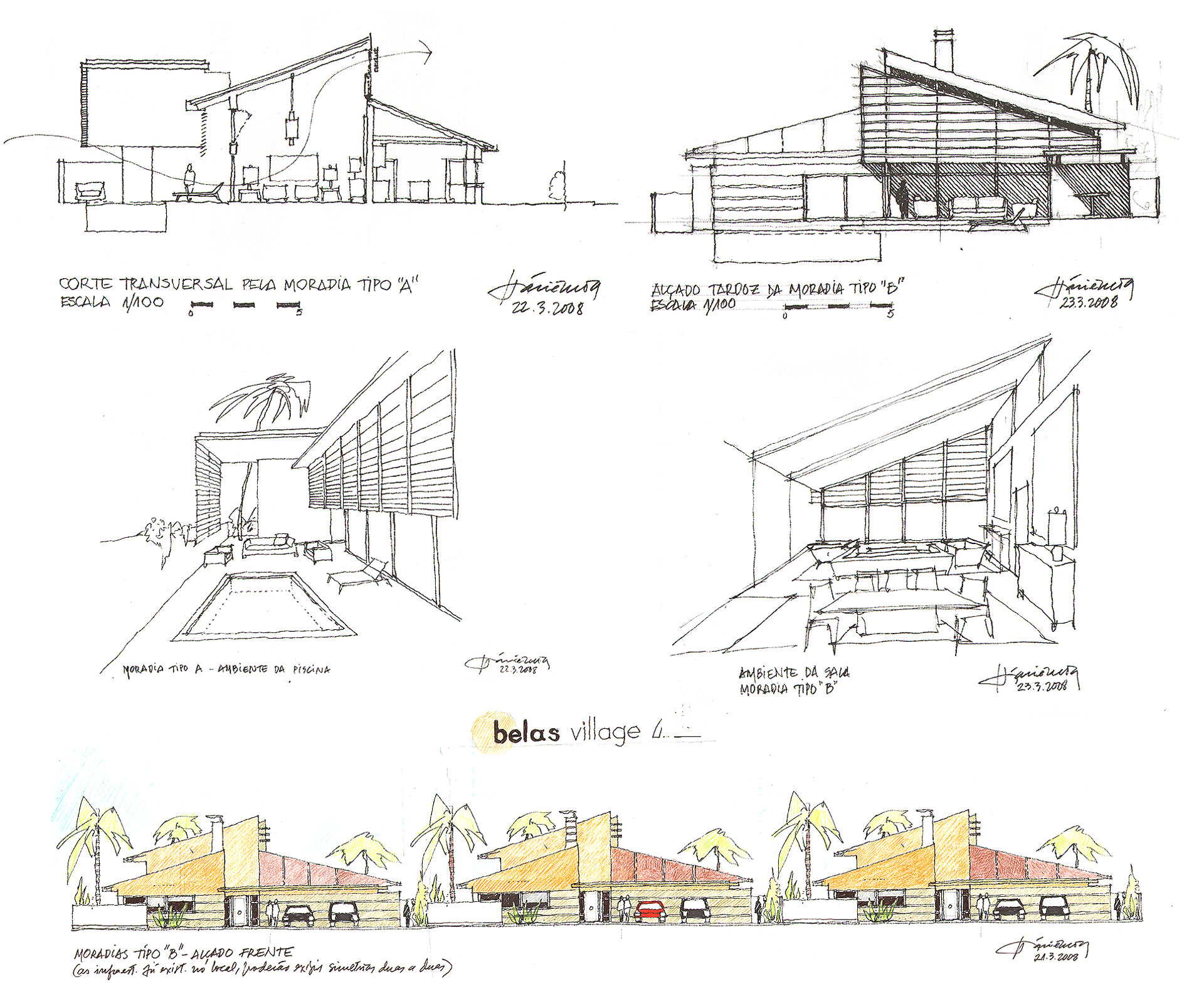In an existant plot with a high density occupation, it was meant to draw one floor typologies, keeping a vernacular language and with predominantly gabled roofs, where covered arrival and private parking are located.