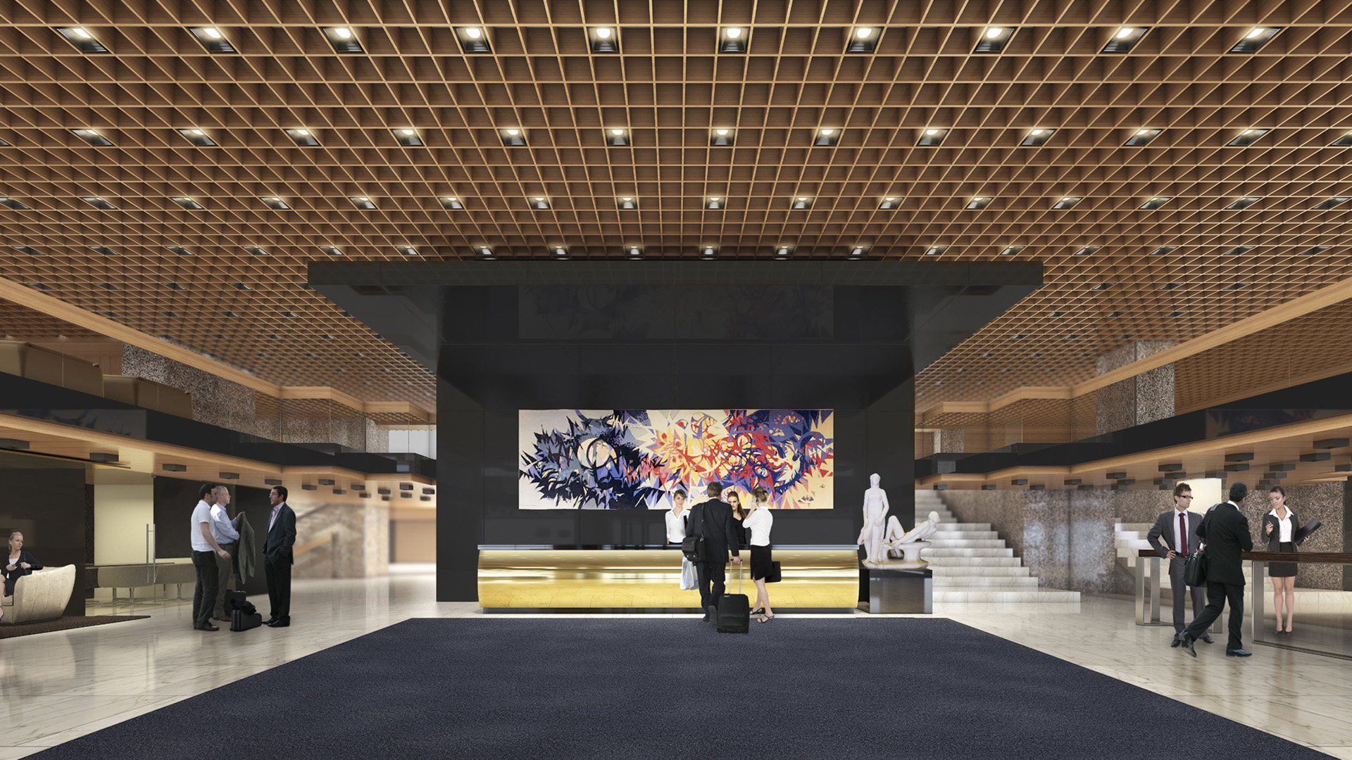 It was defined the new position of the large tapestry and removed the old fountain, allowing to emphasize the double-height lobby and its spatial clarification.