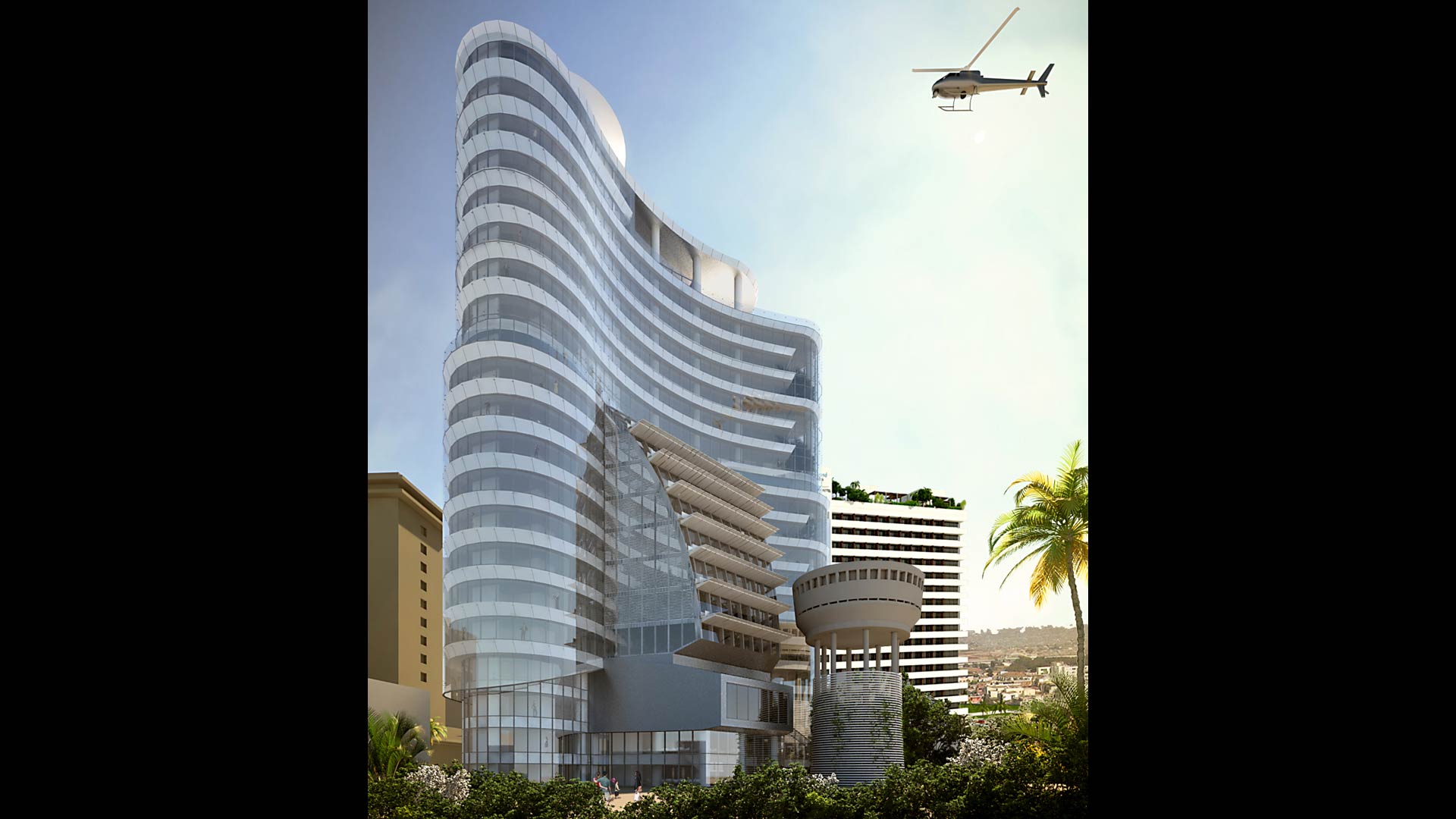 In its genesis it was determinating the limited space available, the presence of a high water tank that is "embraced" by him, thus opening its front to the two main avenues.