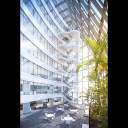 In addition to the workspaces, the building integrates generous areas for possible public use ,namely areas of temporary exhibitions and multipurpose auditorium.