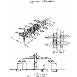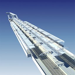 These "leaves" are materialized by a white tubular structures, in different sections, partially coated with aluminum plates of the same color and glass panels, along with the platforms.