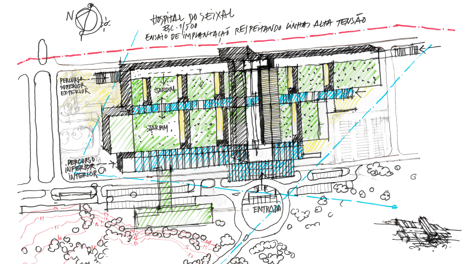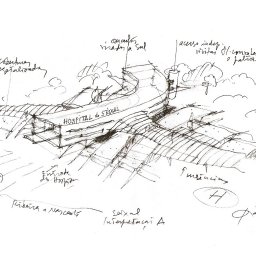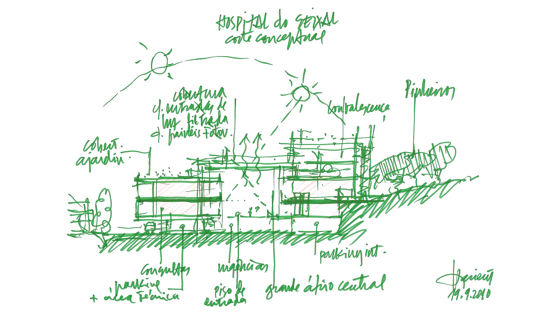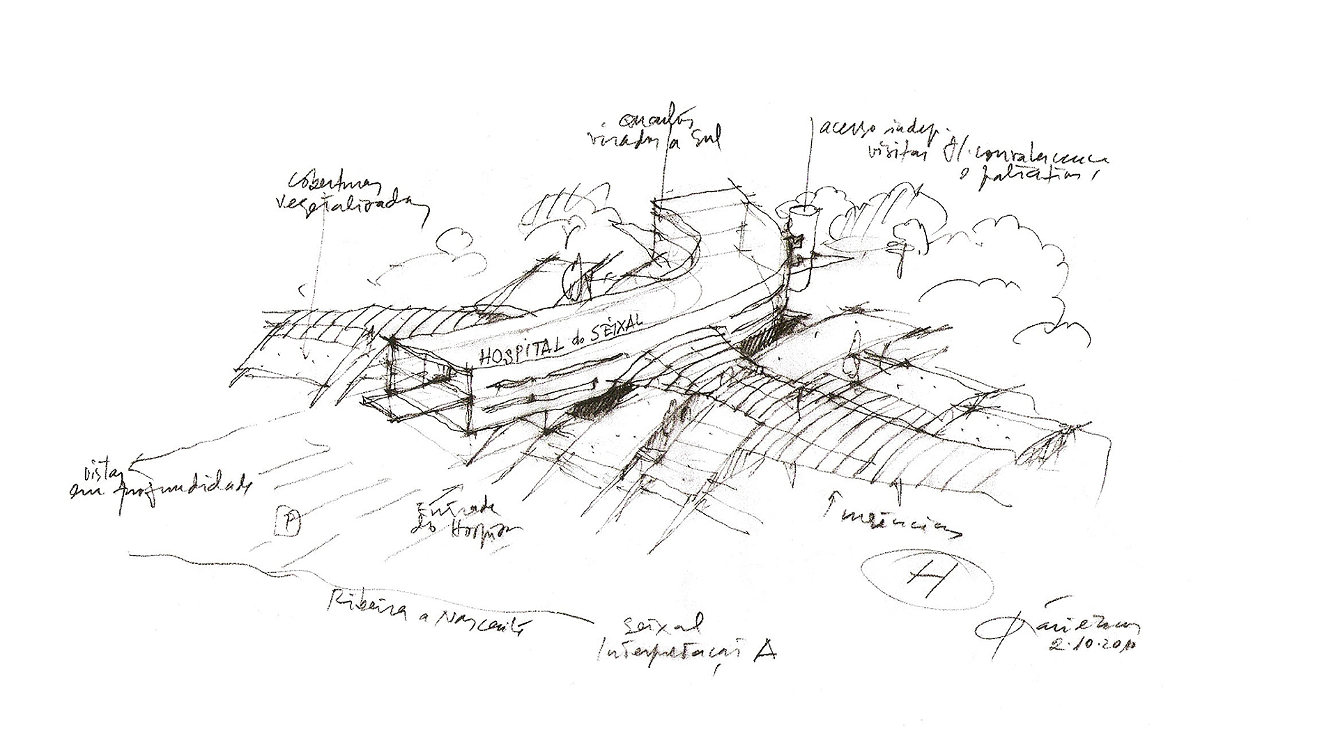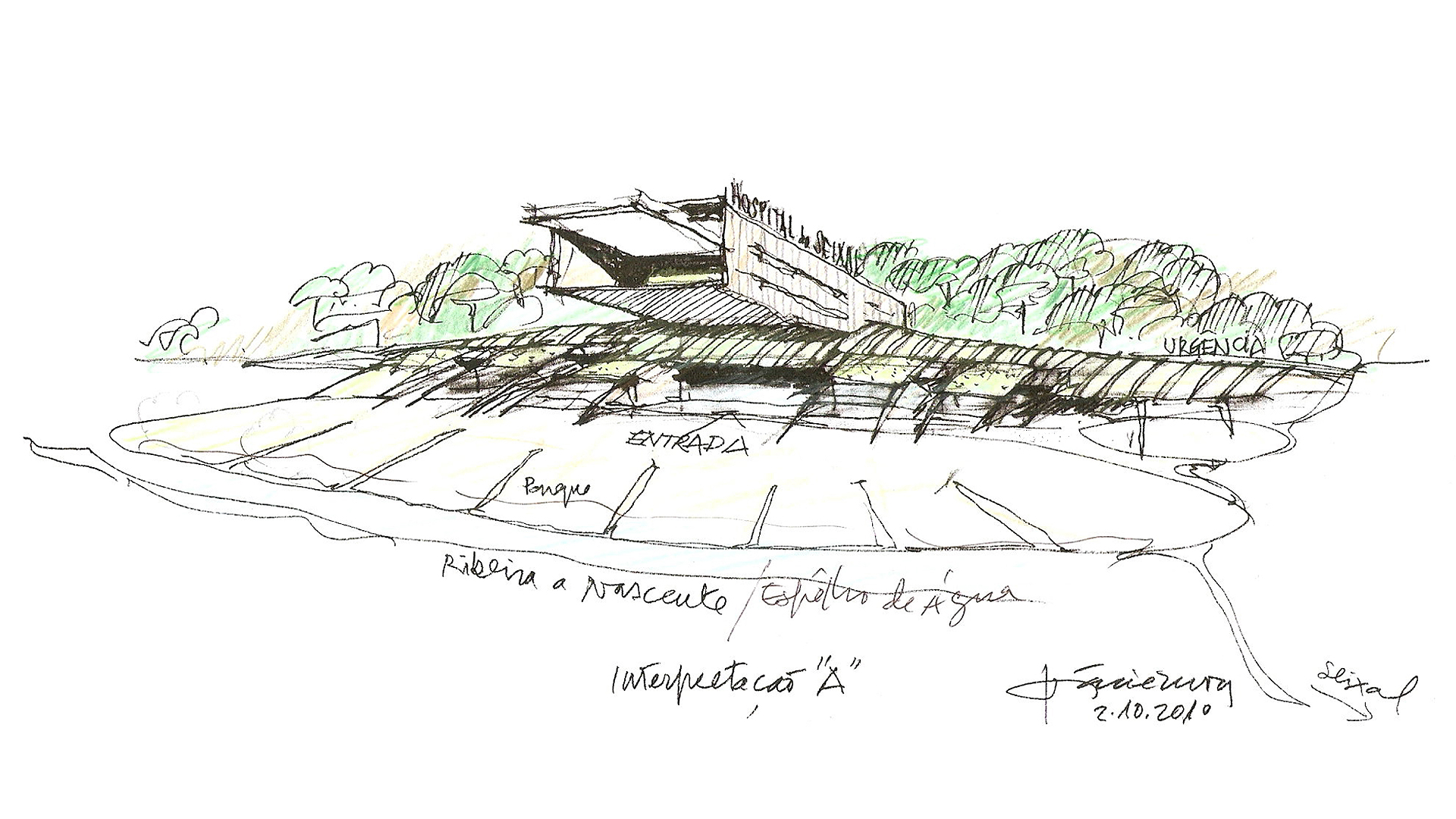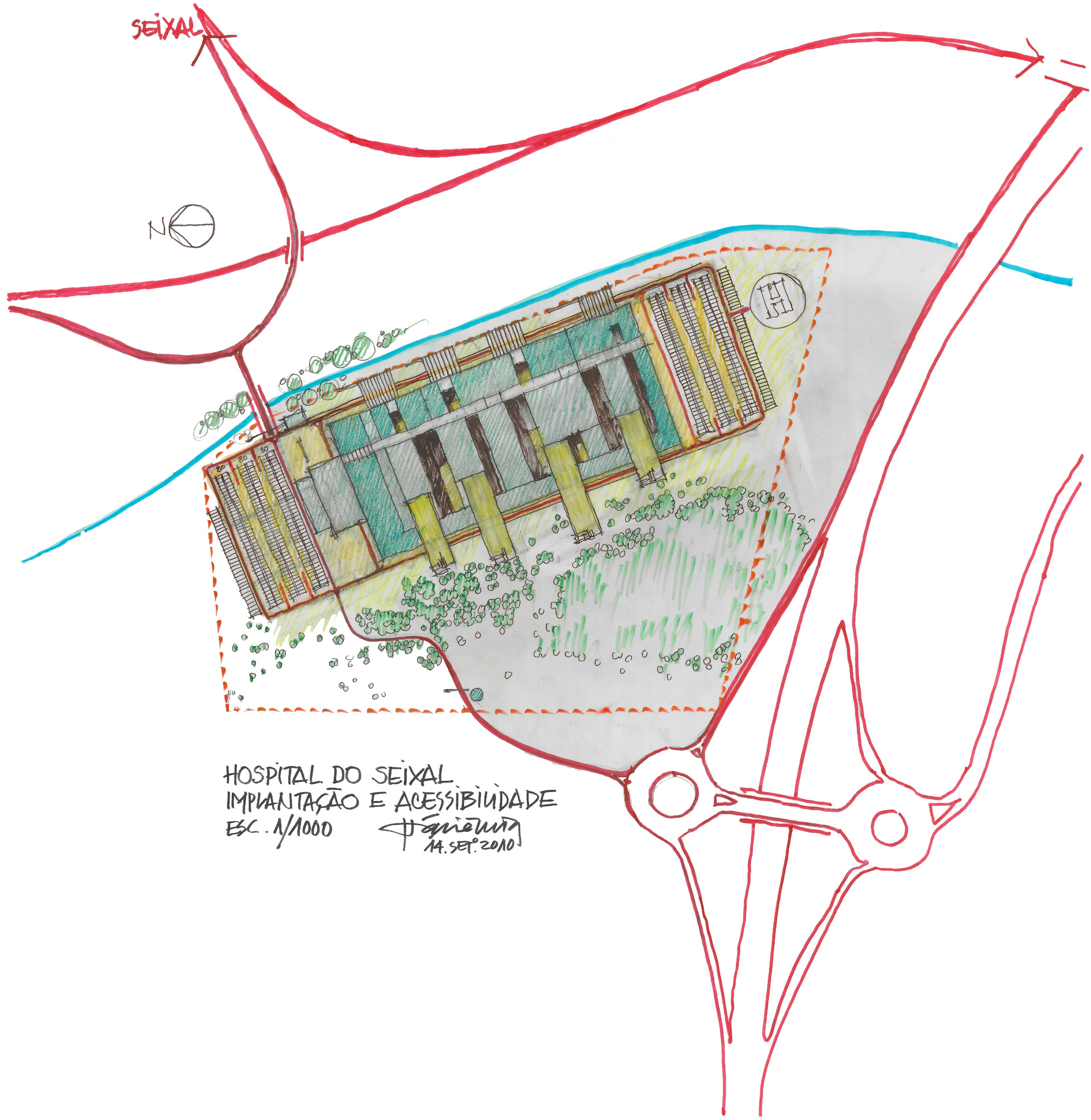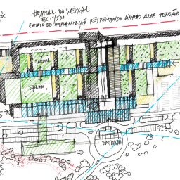 Given its location, at the foot of a small high, with very wooded grounds, sliding along a valley trough, limited it self by a water line, flowing along the road line that connects seixal to sesimbra,this intended to affirm itself as a "green" project respecting at the most the local atmosphere and taking inside an environment dominated by nature, with the intensive use of all alternative energy that are available on the market nowadays.