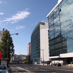 The volume ratio of the building with the other architectures monitoring on the side of António Augusto de Aguiar Avenue is made through a modular design, marking large spans for the rooms, moving to a slightly curved volume marking the corner, all coated in glass so as to make it aesthetically significant, and limiting it on the last floor with a large flap of sheet aluminum that protects the recessed rooftop restaurant.