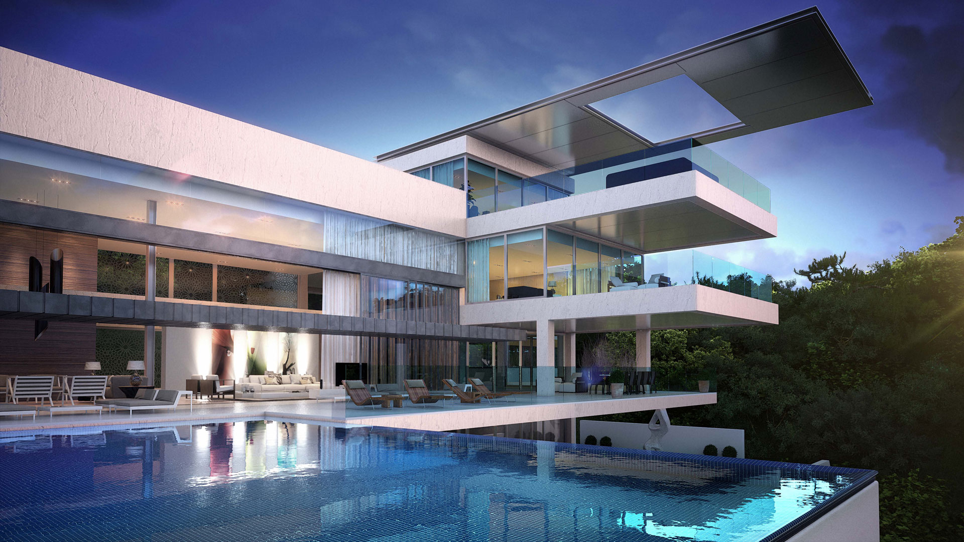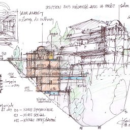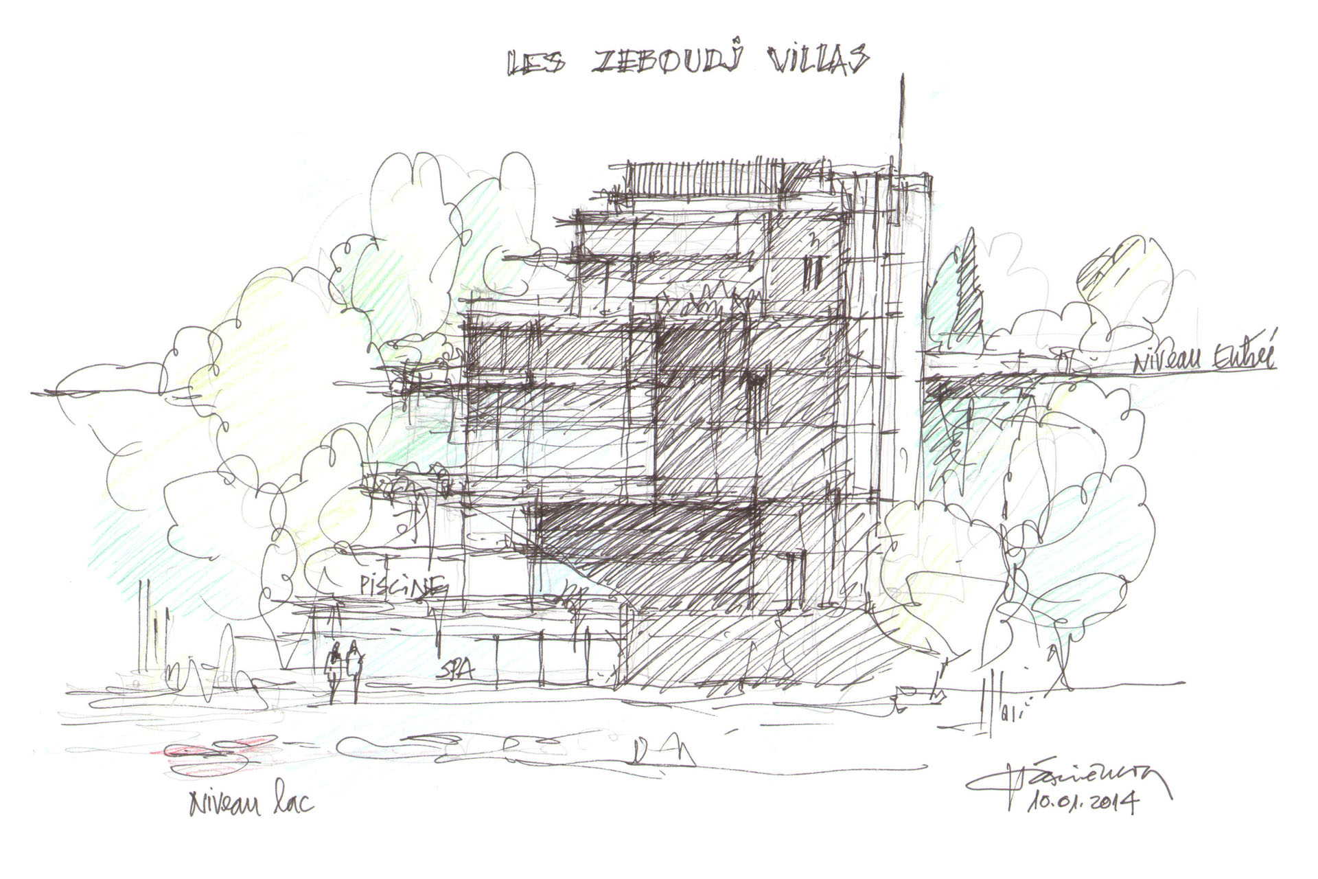 Private villas in a strong pending plot in the center of Algiers, facing north and with profound views over the Sea. It was intended large terraces adjoining the living spaces and the main Suites, always ensuring a high privacy.