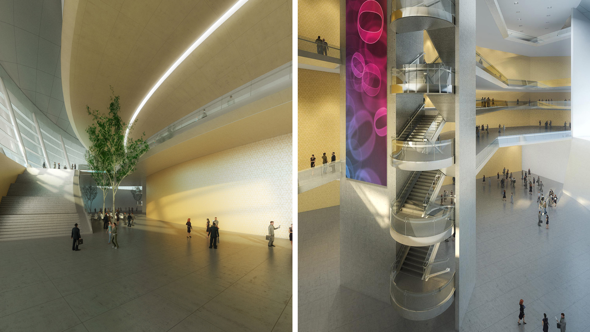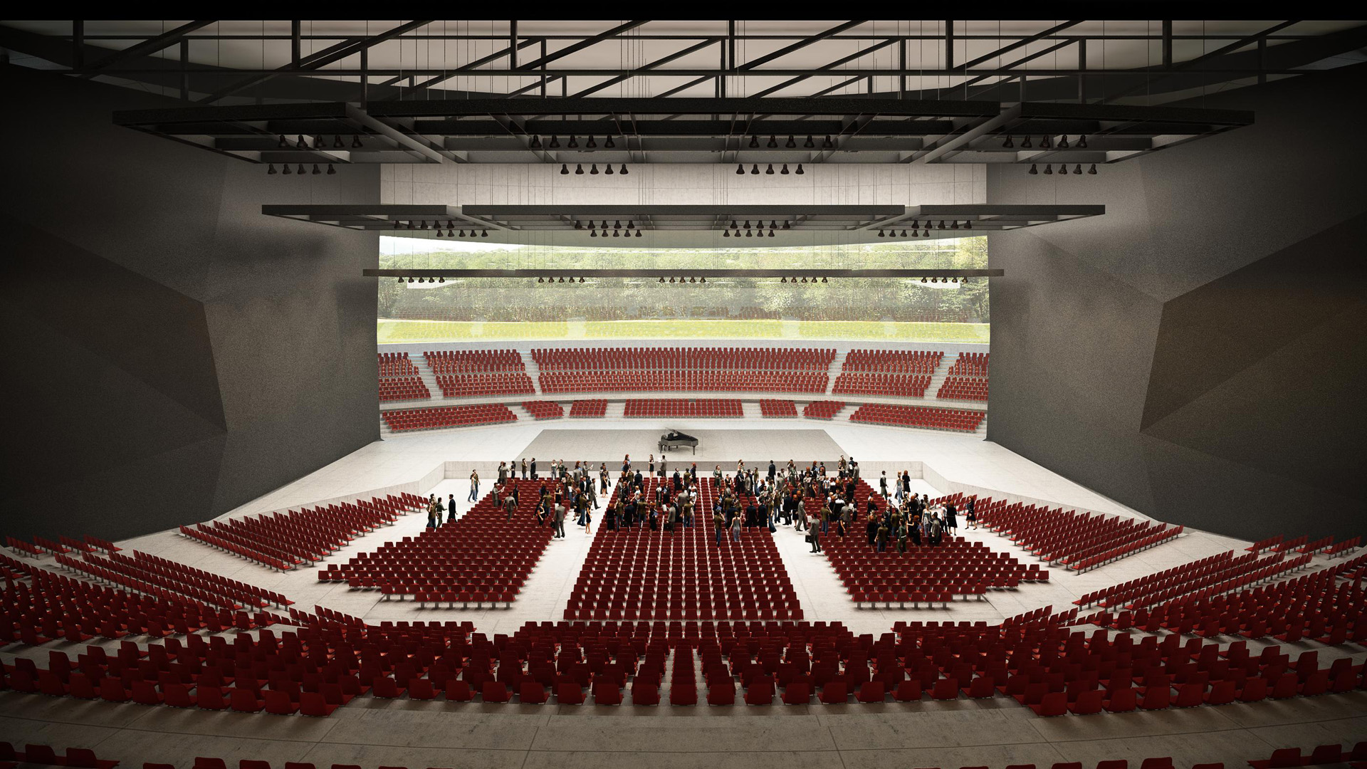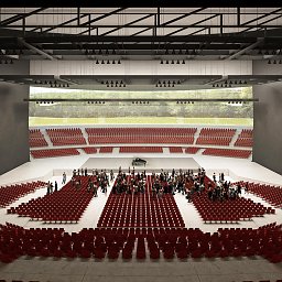 The foyers were developed under the stands at the periphery, with visual relationship with the exterior, and in collaboration with Arsuna ,various solutions of layouts in plant were developed, that would respond to all types of entertainment required in the program.