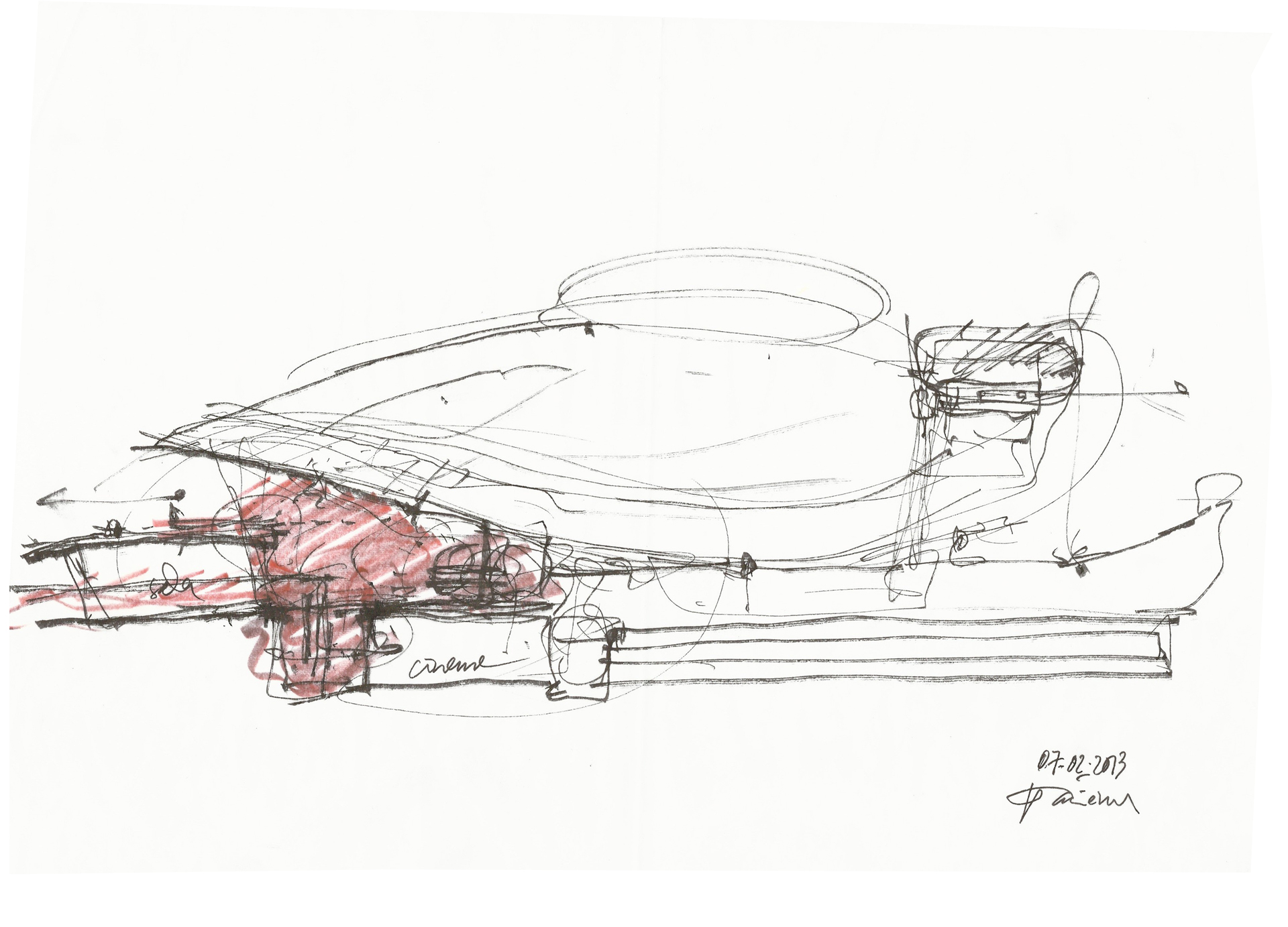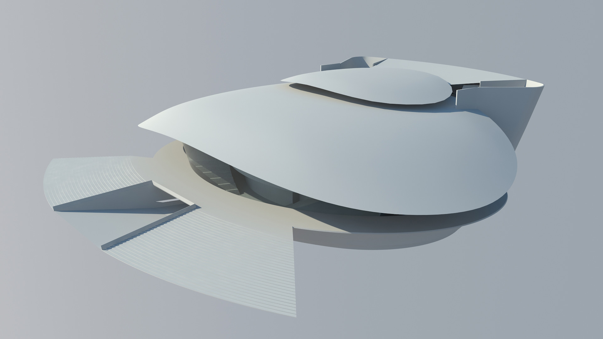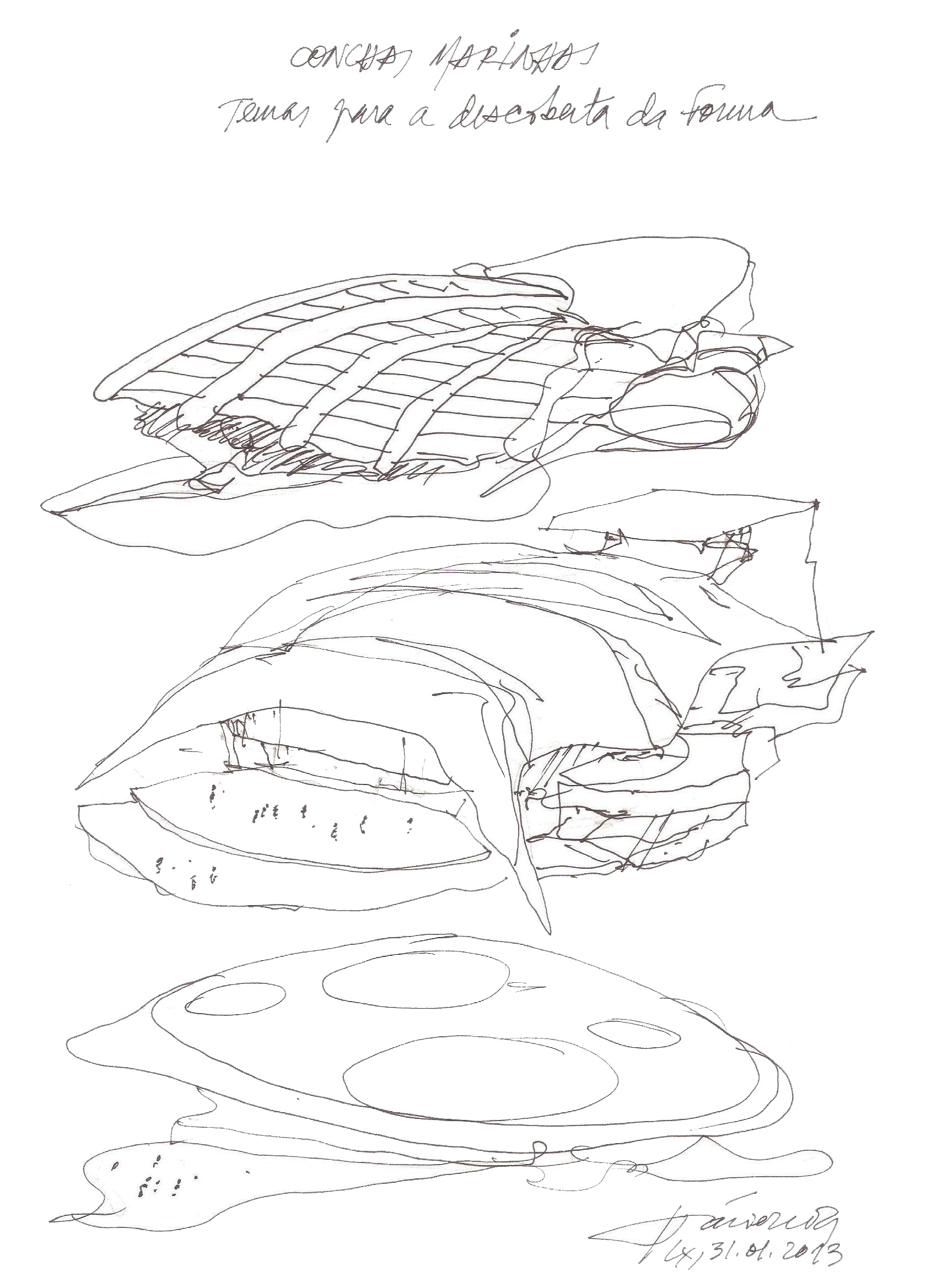 The proposal that we presented, came from the idea of sea shells, which form suggested us the possibility of creating large spans without central supports, and from that shell idea to solve the adjacent functional support in its relationship with the land and also a big restaurant in its highest point.