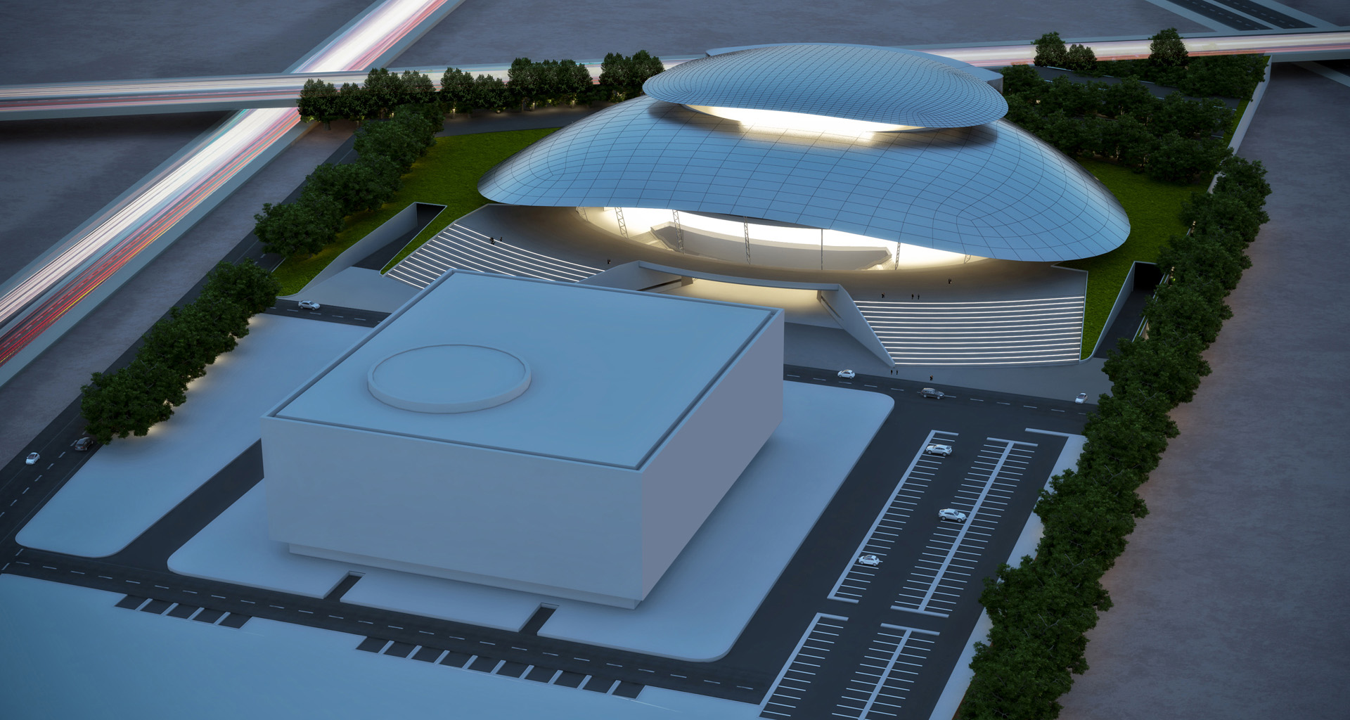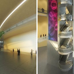 Facing the new building of the Algiers Opera, it was asked a concert hall with capacity for 12000 places, some auditoriums and a great flexibility of use for various types of performances.