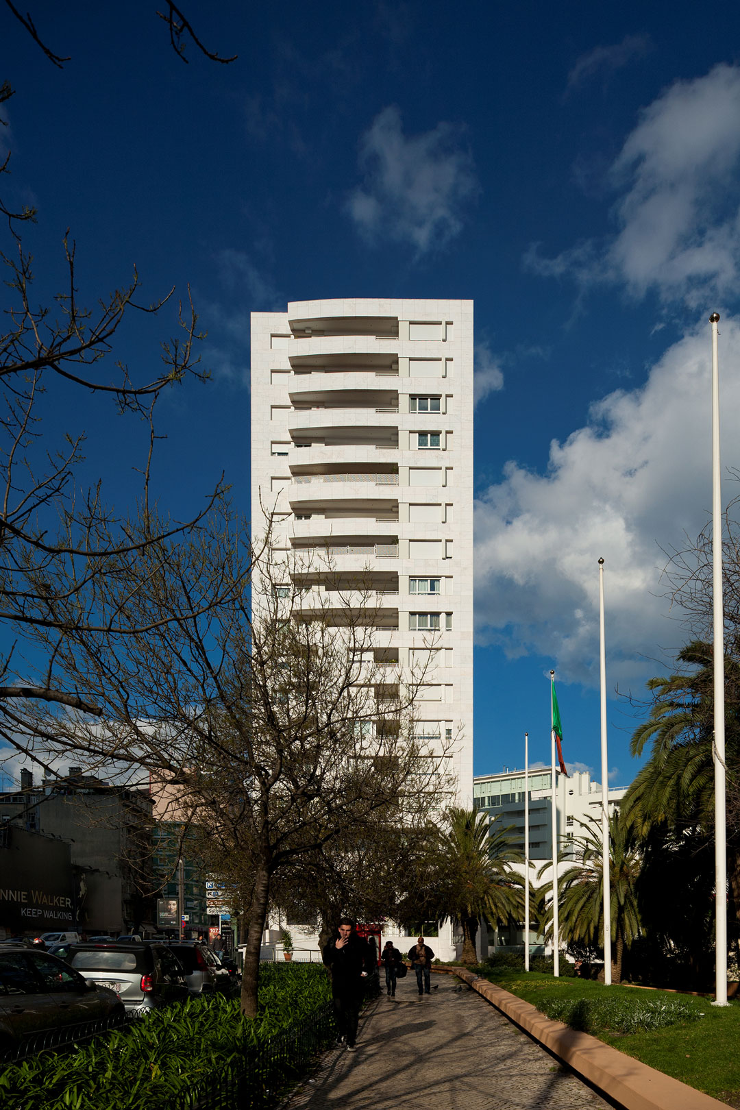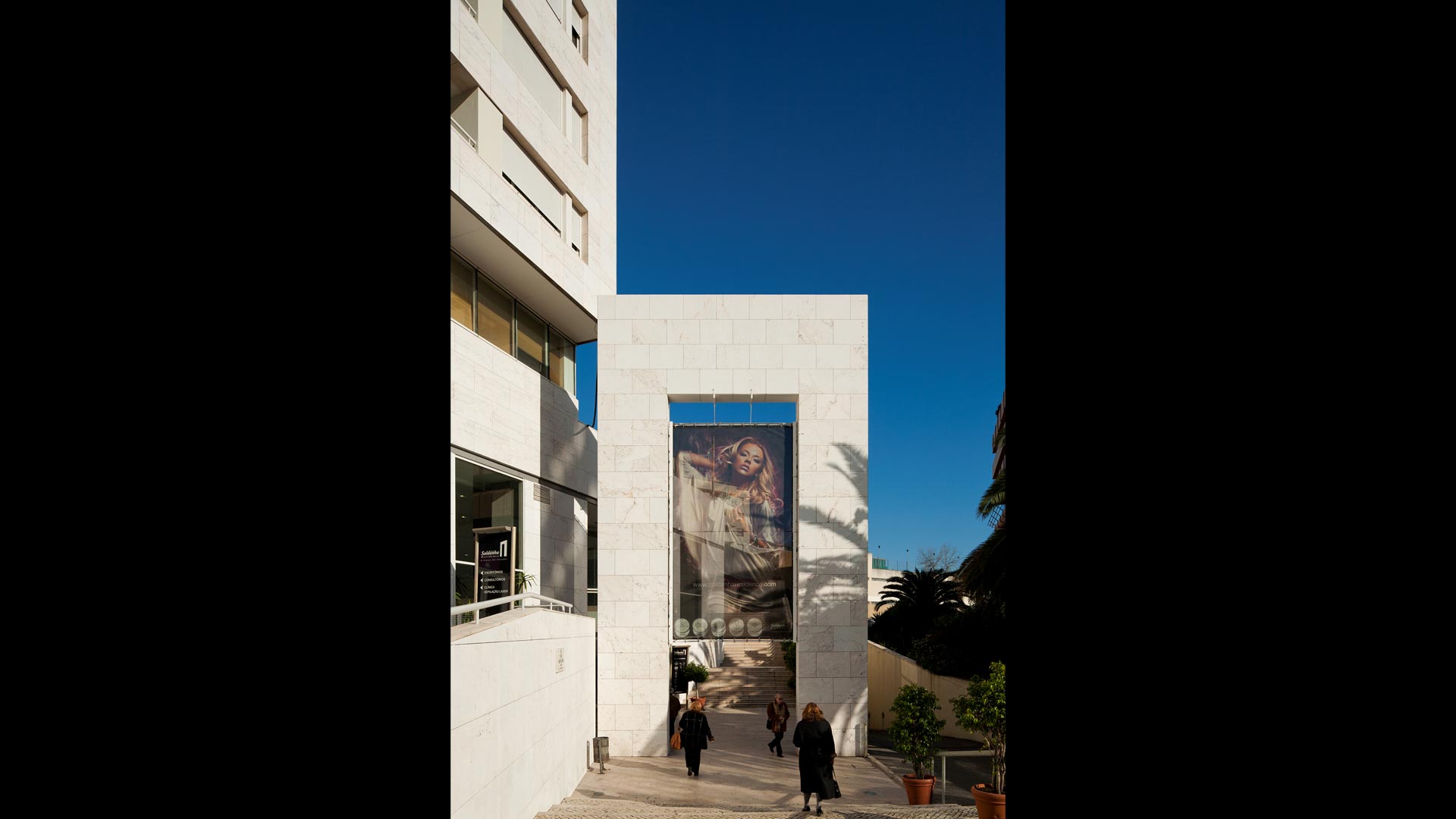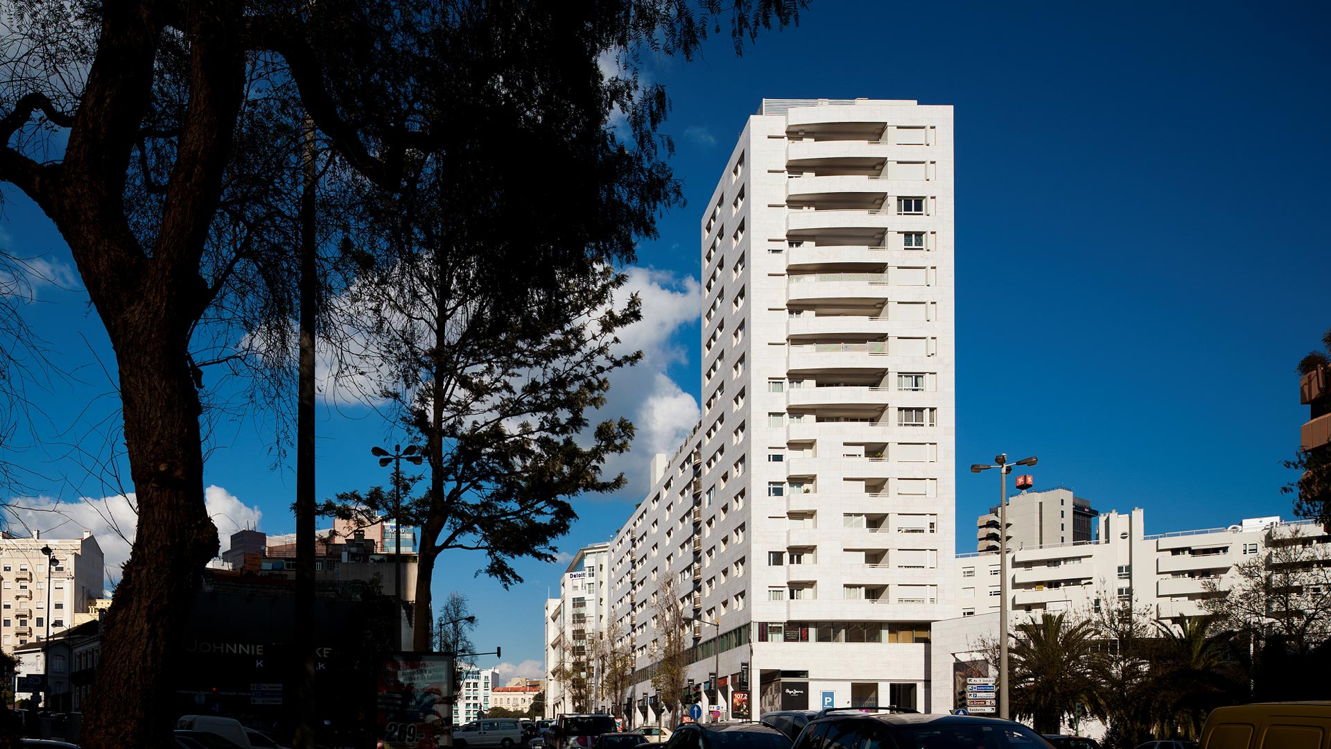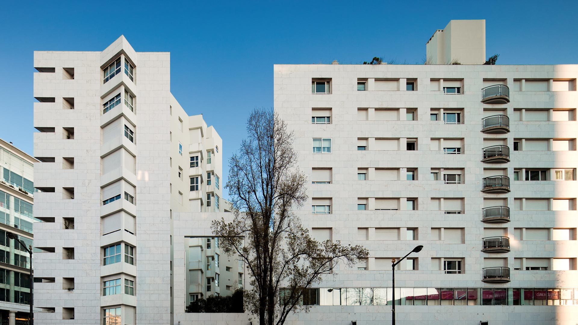 Of the existent team of architects, Javier Adalid was responsible for the shopping center, Felicisimo Saenz for the residential front of Vieira da Silva Street, and I kept in charge of the front of Fontes Pereira de Melo Avenue, here registered and the marketplace on the south side.
