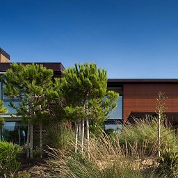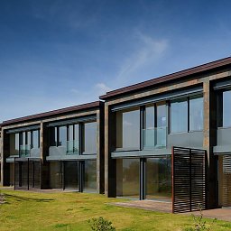 Think villas for a natural environment such as the Troia Peninsula, led us from the beginning, to think in a solution of great openness of the interior with the surrounding space, in which the presence of the sea and the sky, of the beach and the green, would determine the organization of the spaces.