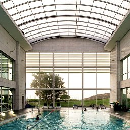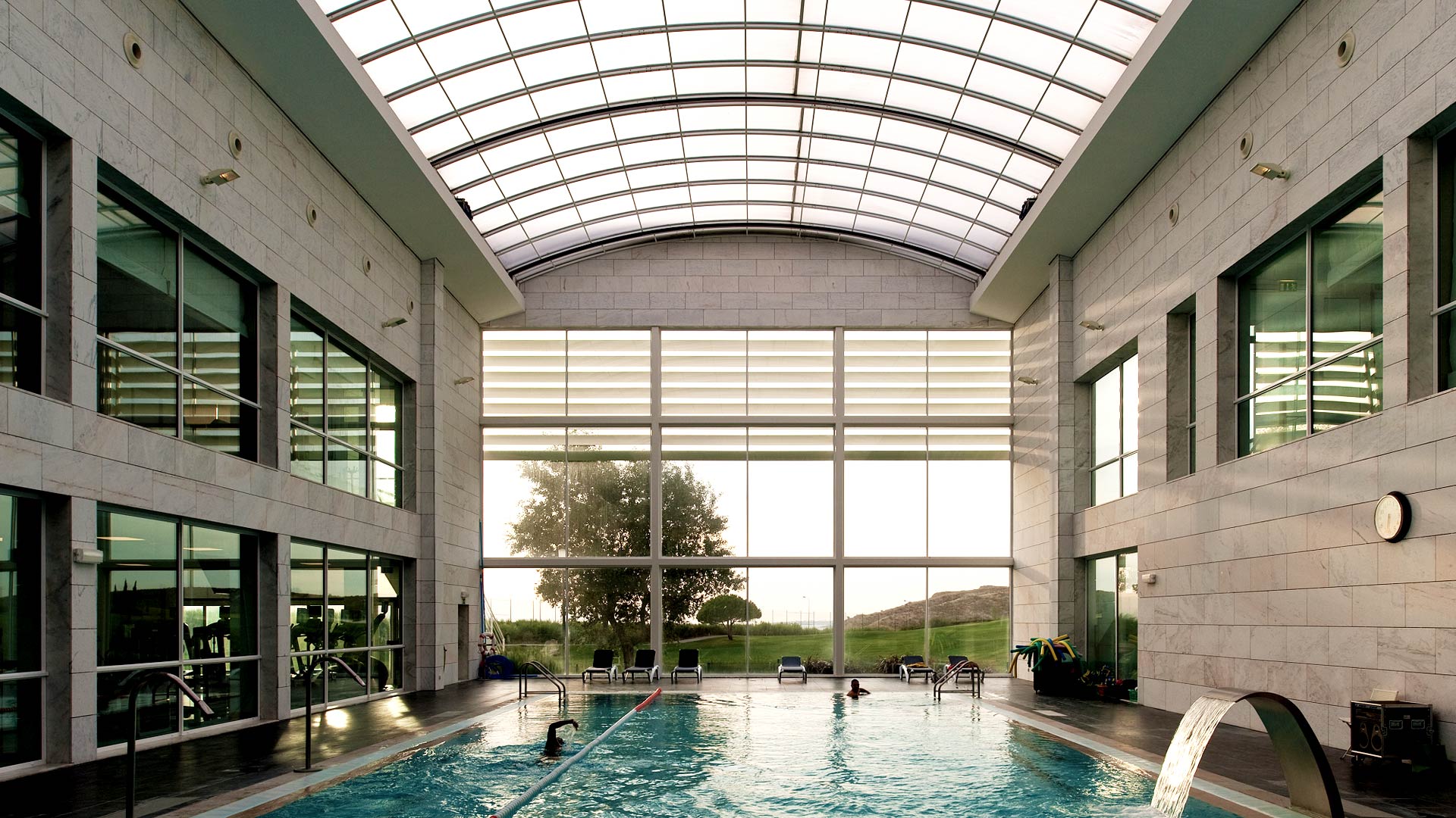 Connected to the Hotel Capuchos Village, it was thought an indoor pool and spa area, which opens to the small golf course, that involves it at South, and also benefits with great views over of the sea.